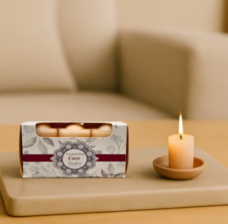 VELONCITOS CON VARIAS AROMAS, CAJAX3 UNID. TAMAÑO: ALTO 5.5CM, DIAMETRO: 3.5CM.
