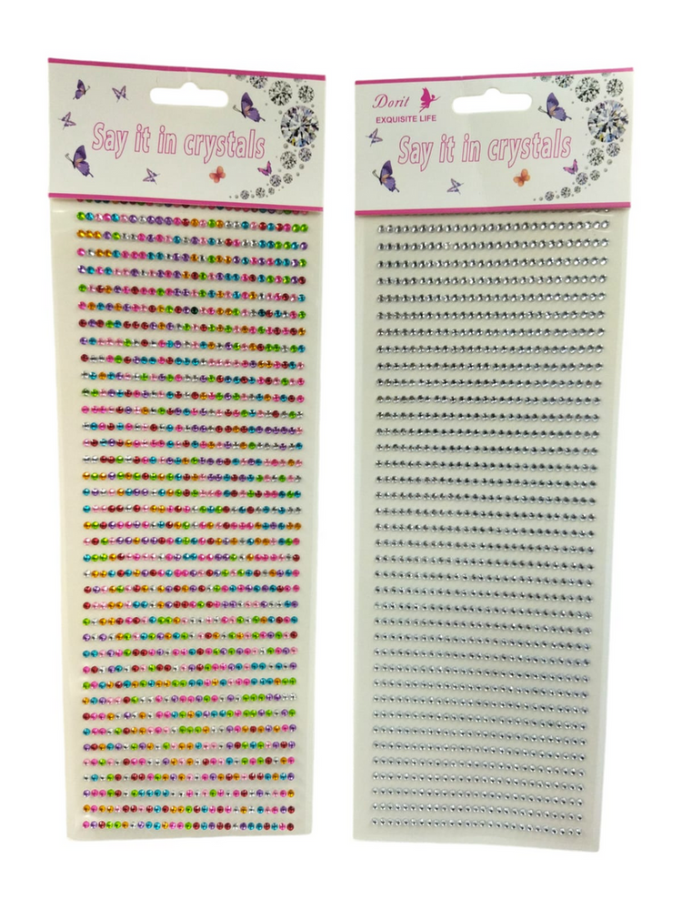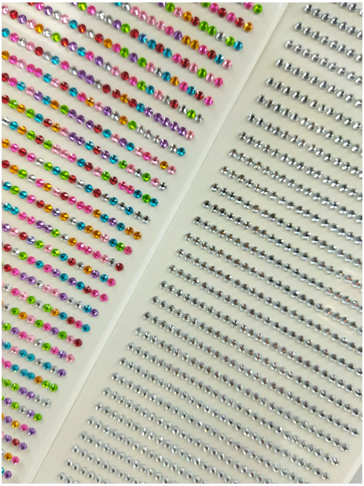 Plancha de 406 strass chicos de 3mm. Strass autoadhesivas para el rostro, cara o cuerpo. Se utilizan como complemento de maquillaje.