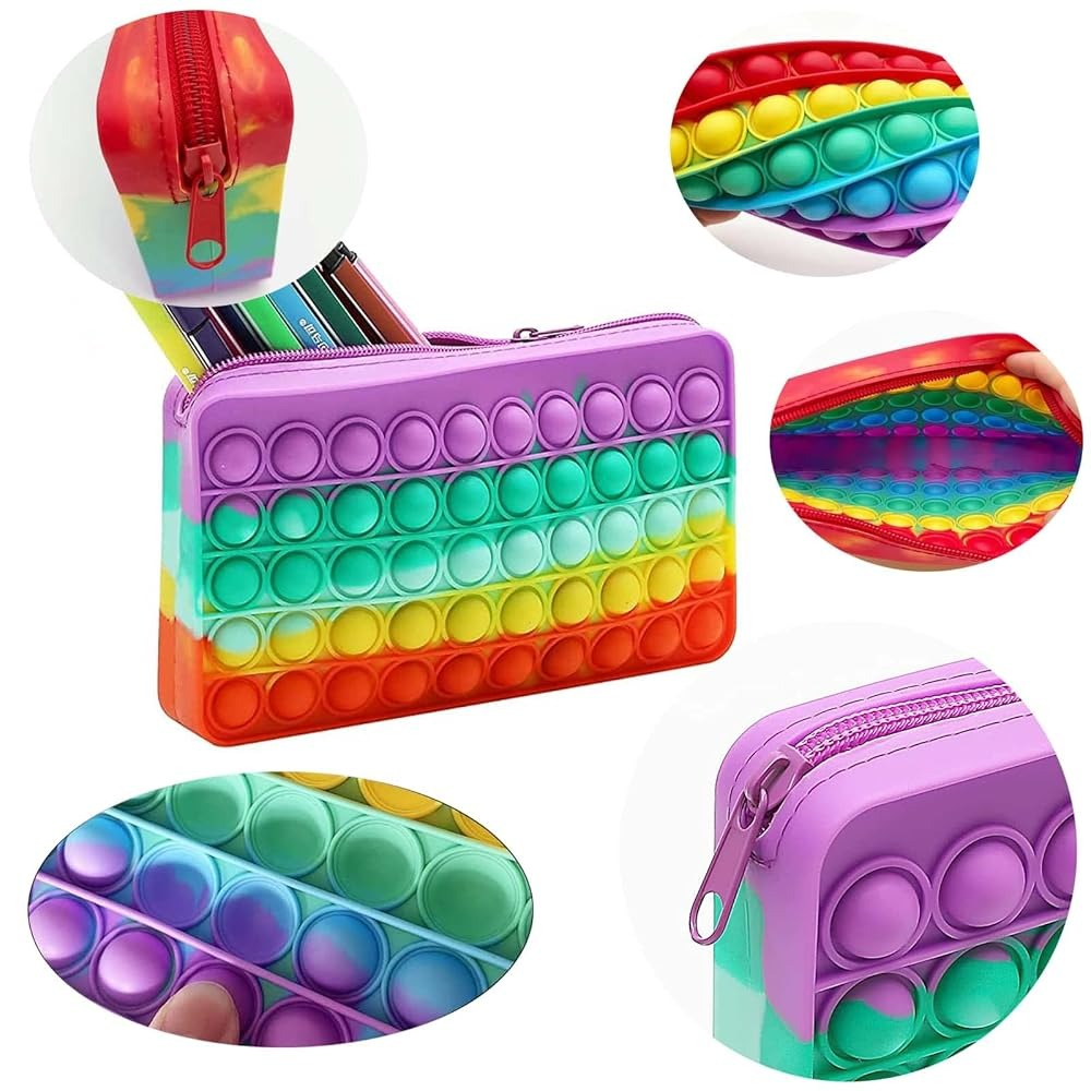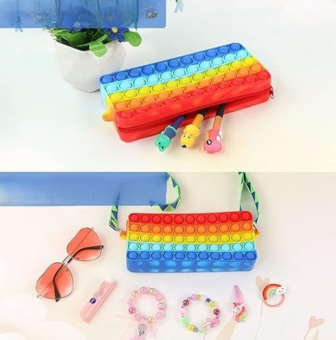 Cartuchera con forma rectangular, multicolor y con un diseño de pop it. Vienen en mas de 3 combinacion de colores, CONSULTAR DISPONIBILIDAD.