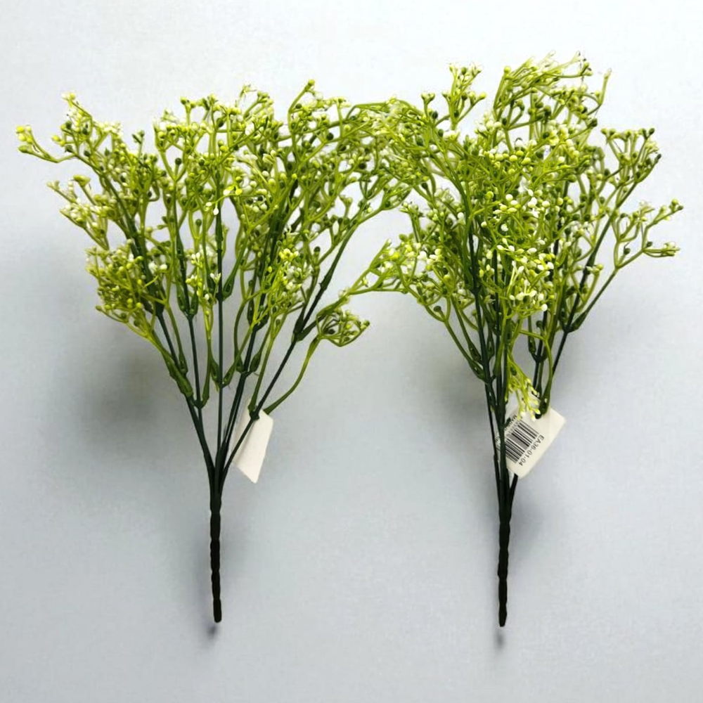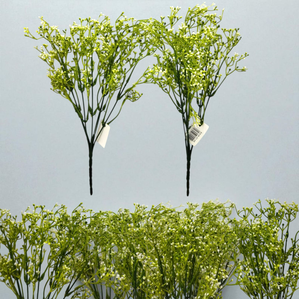 Ramo arbusto artificial, ramo de verde con dtealles blancos.
