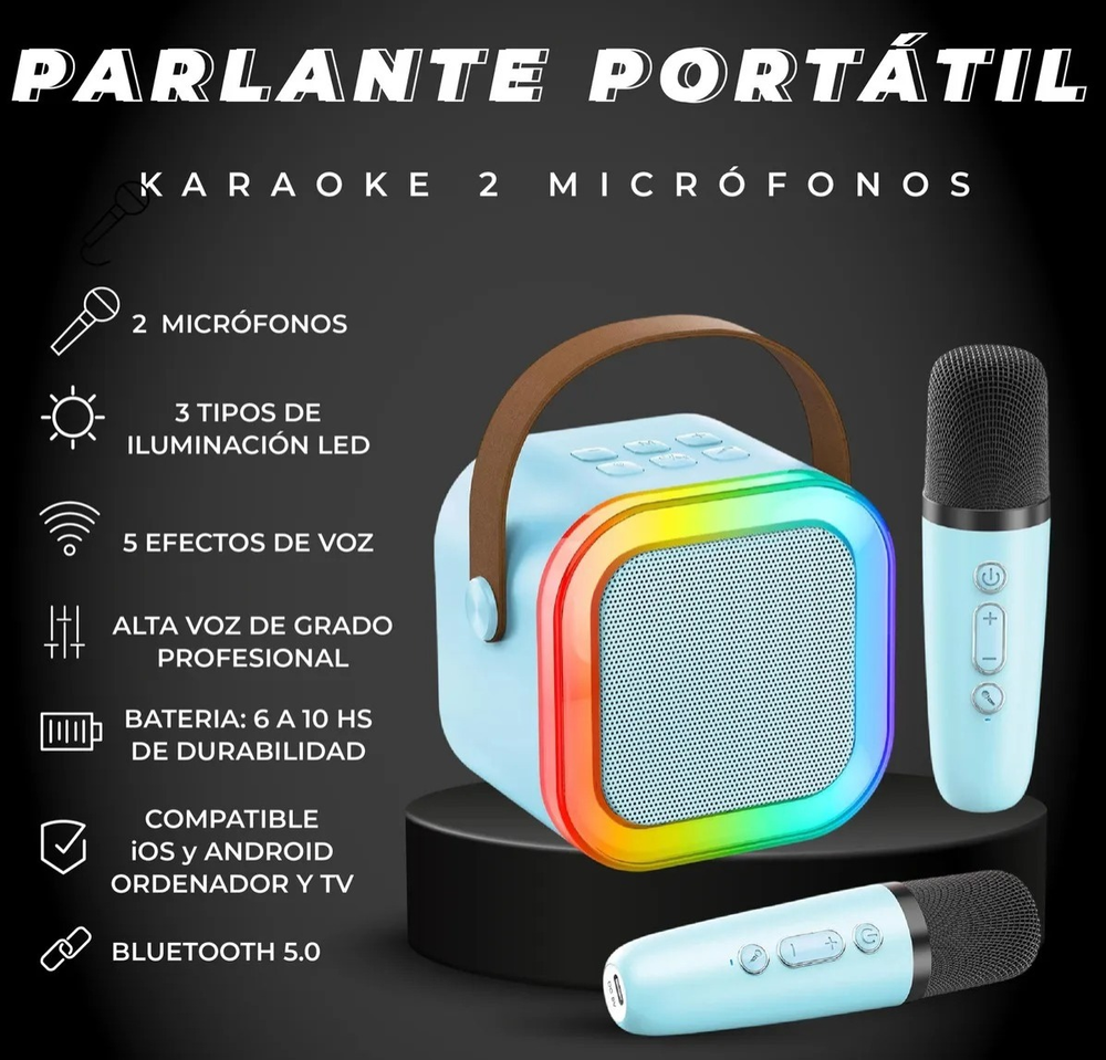 Este parlante viene con dos micrófonos, lo que lo hace perfecto para duelos de canto y presentaciones en grupo. ¡No hay mejor forma de compartir momentos inolvidables! Con una vida útil estimada de 1 a 3 horas, dependiendo del uso continuo, este parlante es ideal para fiestas y reuniones. Transformá tus noches de karaoke con el Parlante Karaoke K12 MTI, donde la música y la diversión no tienen límites.