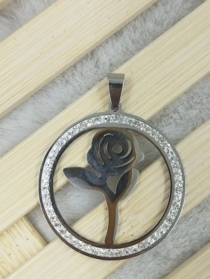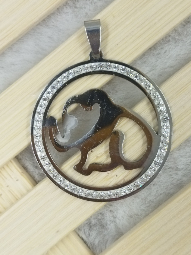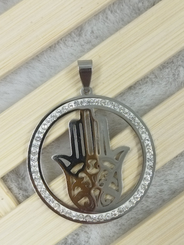 Dije redondo con strass, viene con mariposa, rosa, elefante o mano fátima en el interior.