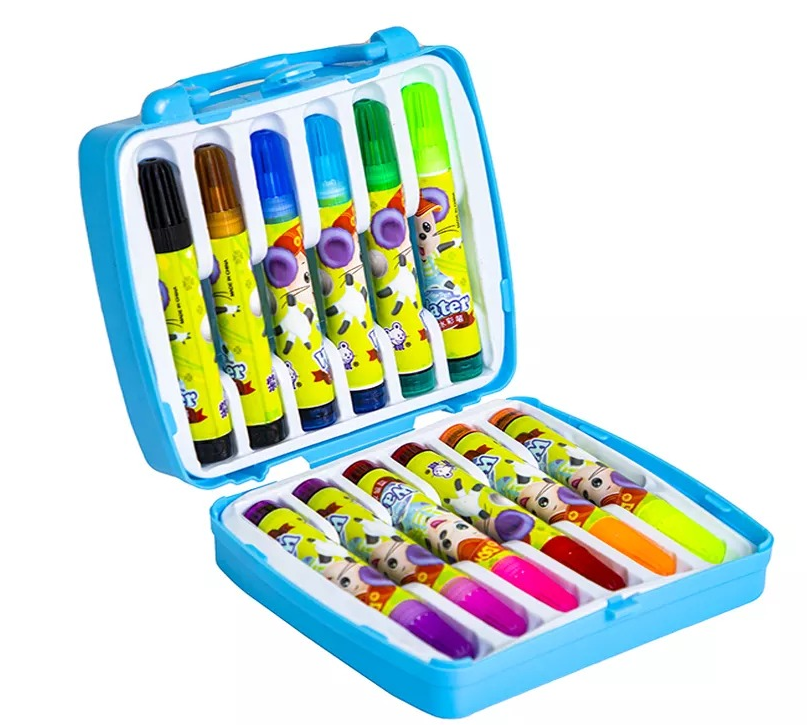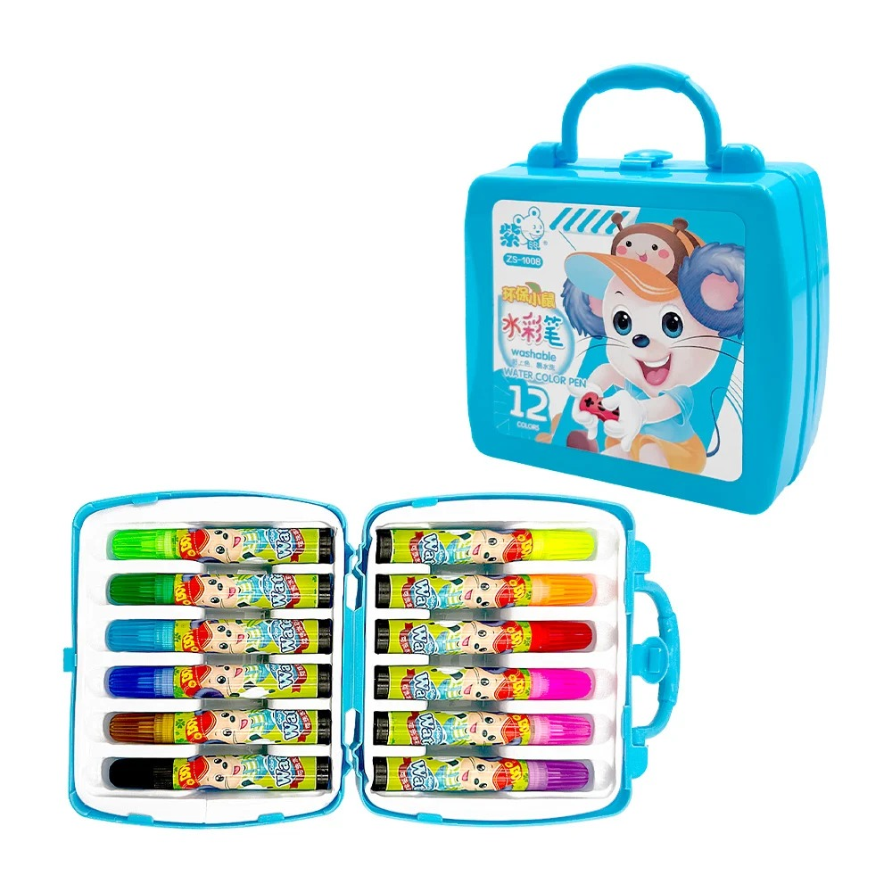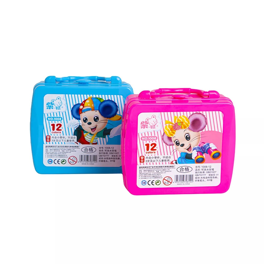 Valija con 12 fibras de color, personalizadas ratoncitos. Celeste y rosa.