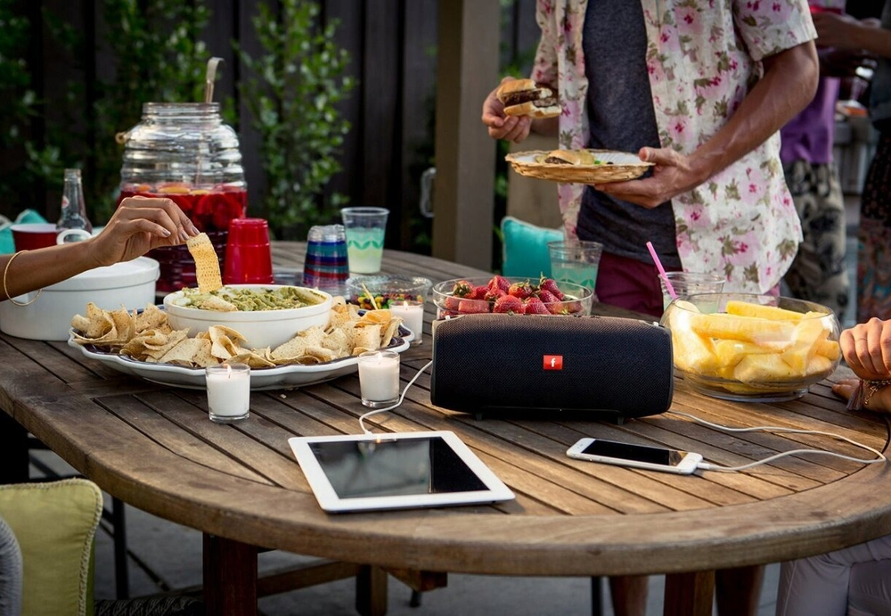 Parlante USB con bluetooth. Conecta de forma inalámbrica hasta 3 teléfonos inteligentes o tabletas al altavoz y toma turnos para reproducir un sonido estéreo potente y sacudidor. Para restablecer la unidad, mantenga presionado el botón de encendido y Bluetooth al mismo tiempo. Resistente al agua significa no preocuparte más por la lluvia o las derrames; incluso puedes limpiarlo con agua corriente. Solo no lo sumerjas.