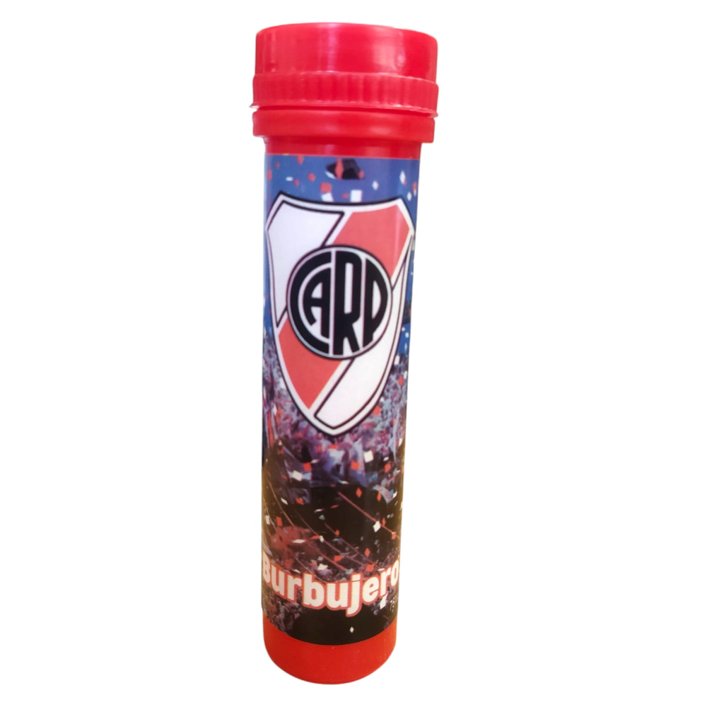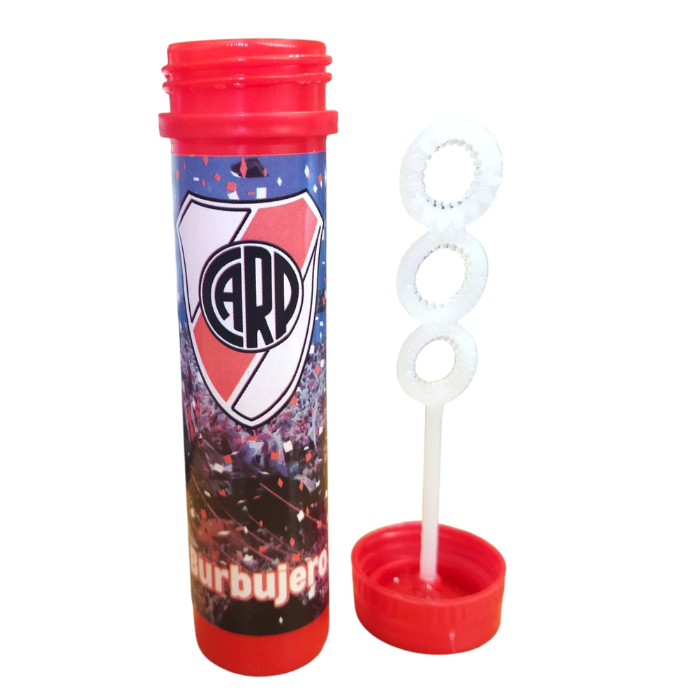 Burbujero con el diseño de RIVER. Contenido 120 ml. Pack por 12 burbujeros. Ideal para entregar en los cumpleaños o como regalo de fin de fiesta.