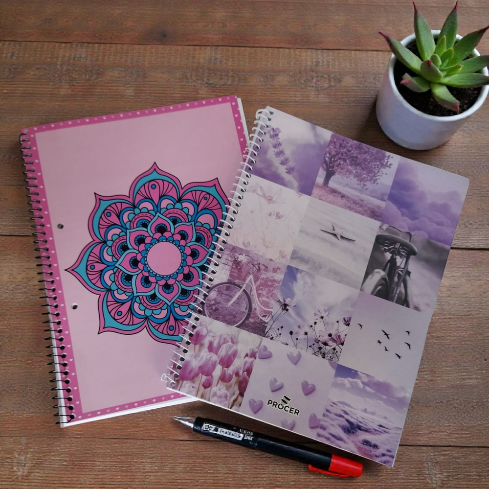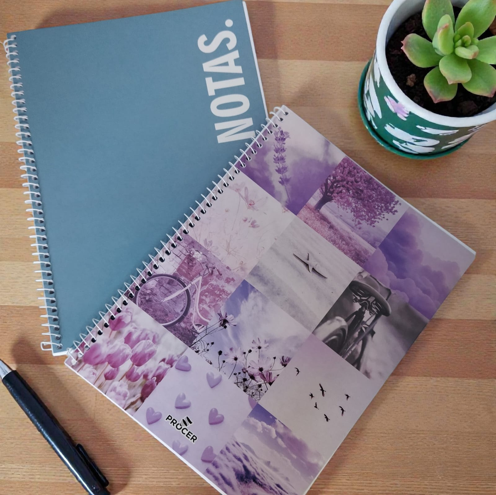 Cuaderno con espiral, tapa flexible, 80 hojas rayadas o acuadrito. con papel obra de 56 g/m2.
