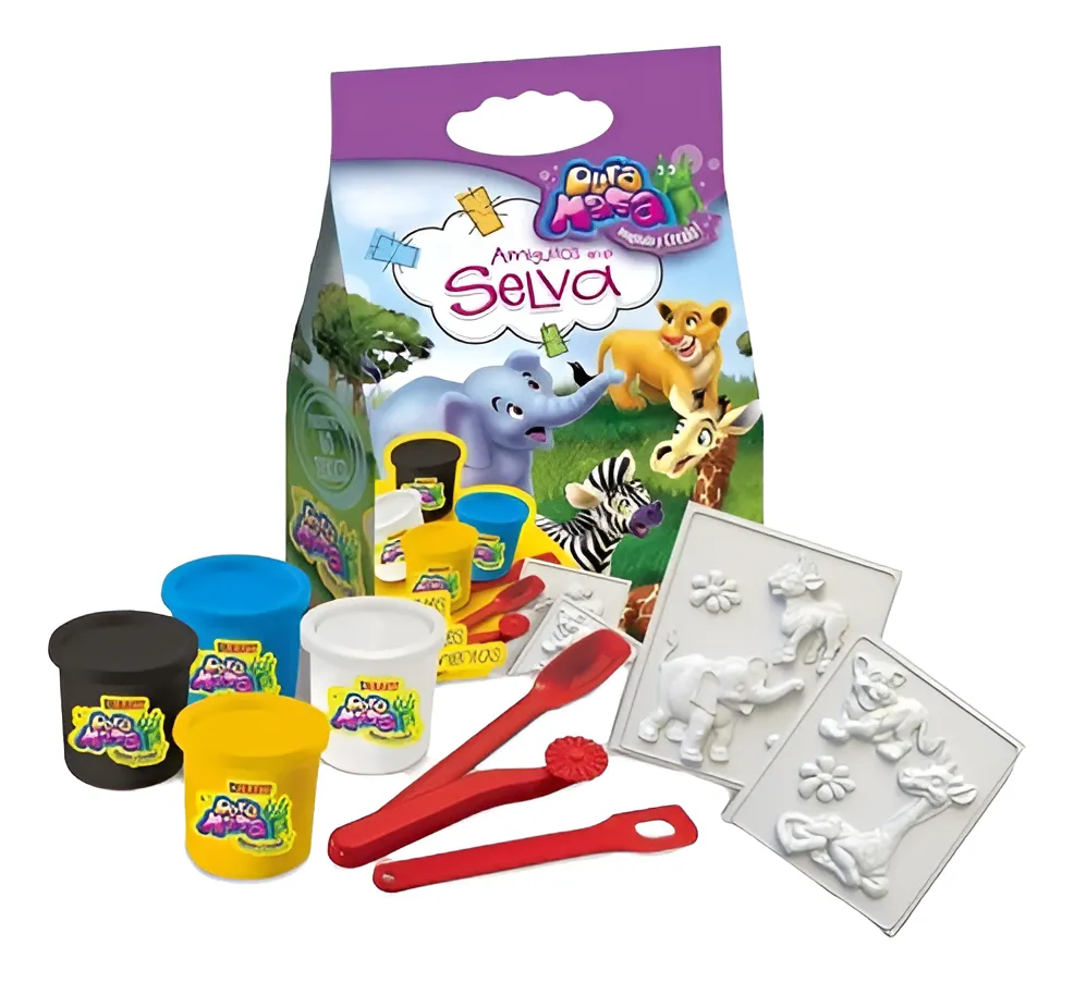 DURA MASA DURAVIT: Set de juego "Amiguitos en la Selva" con molde Imaginalo y Crealo! INCLUYE: -4 Moldes -4 Potes de Masas -3 Herramientas PRODUCTO NO TOXICO