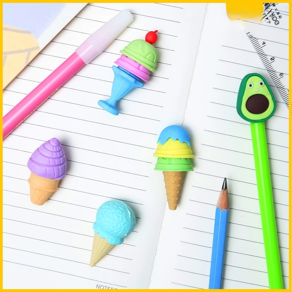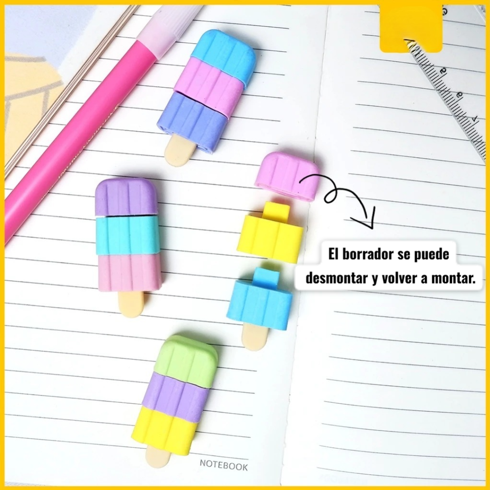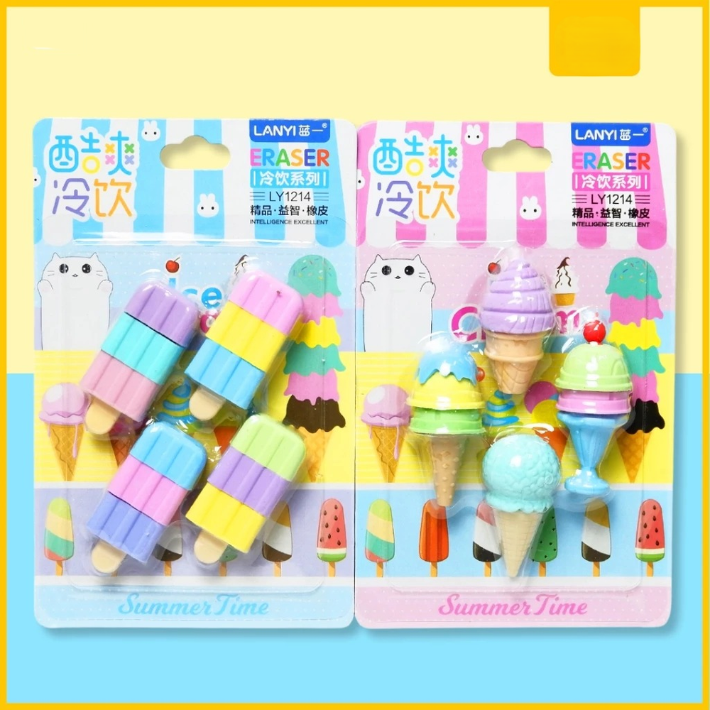 Blister con 4 gomas de borrar, vienen con diseños de helado.