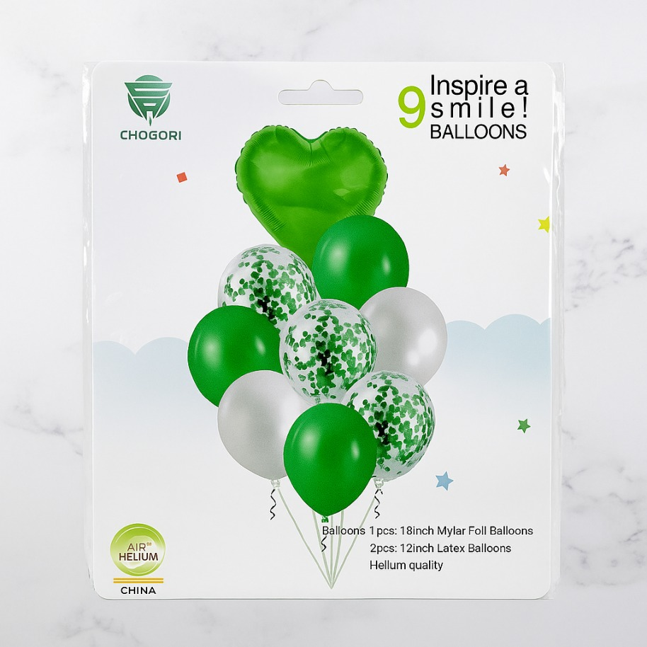 set de ramo de 9 globos, con 1 rollo de hilo contiene: 5 globo latex perlado de 12 pulgadas/ 30cm 3 globo latex transparente con confetti de 12 pulgadas/ 30 cm 1 globo foil metalizada de 18 pulgadas/ 45 cm