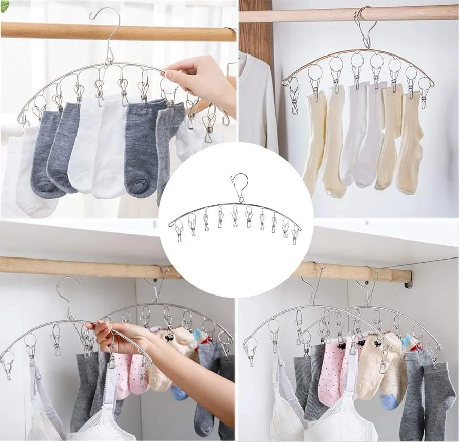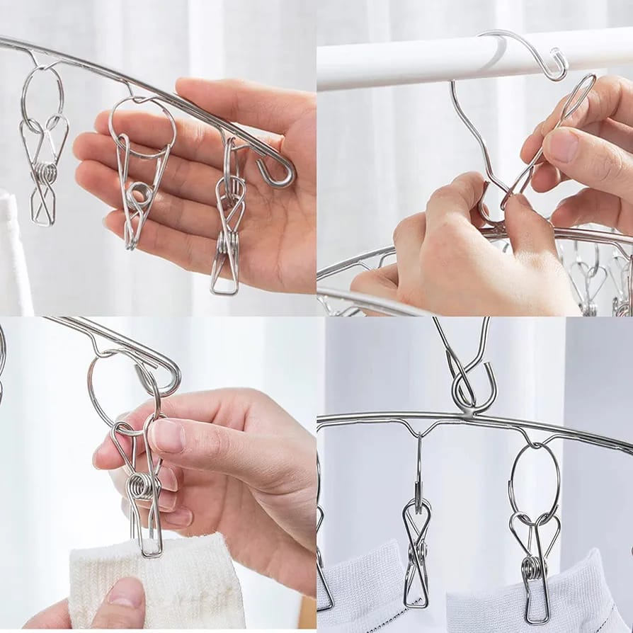El colgador de ropa es conveniente y fácil cuando se trata de colgar y secar ropa y prendas delicadas. Hecho de acero inoxidable resistente y confiable, este tendedero de ropa te proporciona el lugar perfecto para colgar calcetines, sujetadores, ropa interior, bufanda, bragas, guantes, pañuelos, ropa de bebé y otros delicados lavables mientras se secan. El gran gancho de metal en la parte superior hace que sea fácil colgar este colgador de ropa de cualquier línea de ropa, barra de cortina de ducha o perchero, por lo que puedes utilizar estas perchas con facilidad en la lavandería o el baño o donde quiera que vayas.