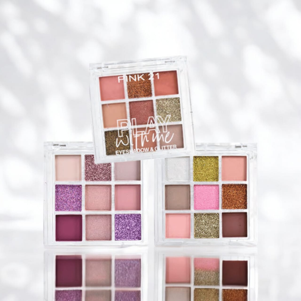 3 grupo de paleta de sombra de ojo con gliter.