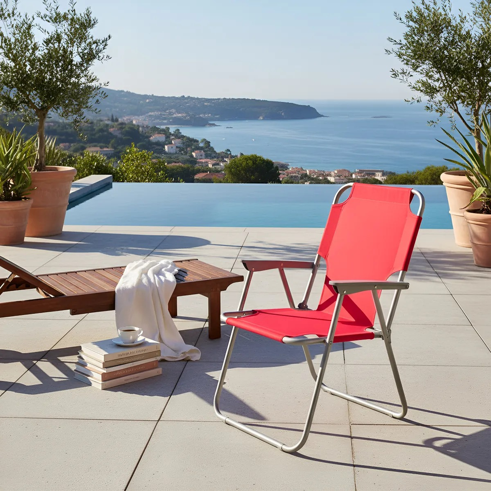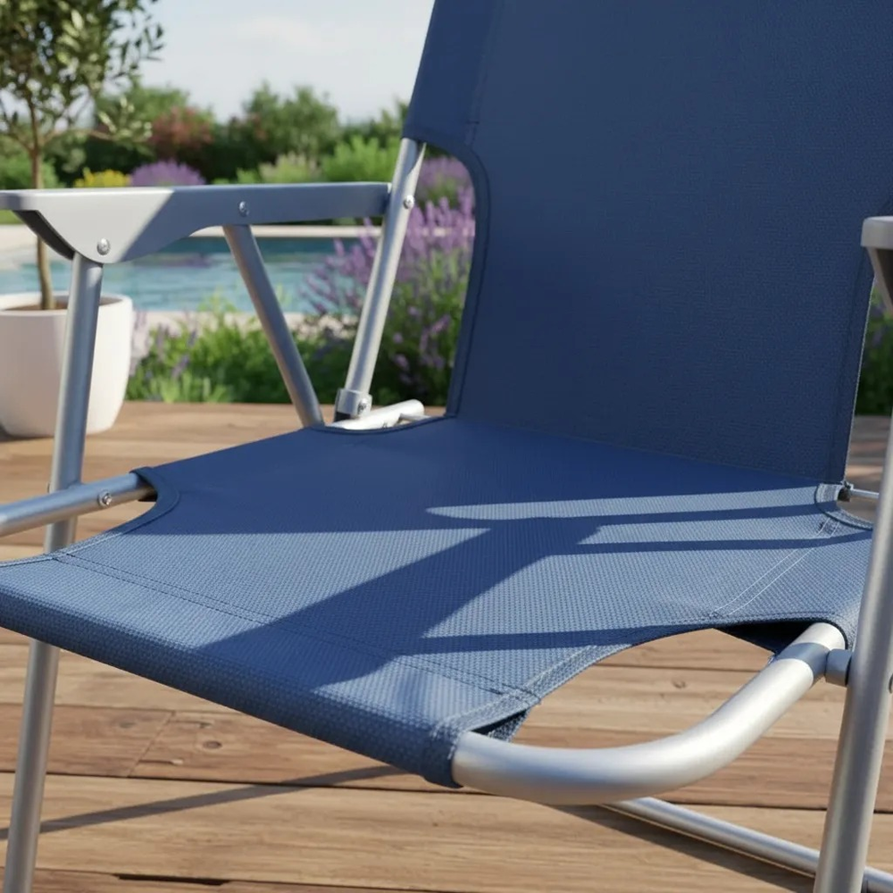 El asiento está confeccionado en tela Oxford, un material duradero que asegura una experiencia confortable. Además, sus apoyabrazos de plástico ofrecen un soporte adicional para tu relax. Esta reposera se pliega rápidamente, lo que facilita su almacenamiento y la convierte en una excelente opción para los amantes de la vida al aire libre. Estructura de caño pintado con epoxi en color aluminio, lo que la hace resistente y ligera.