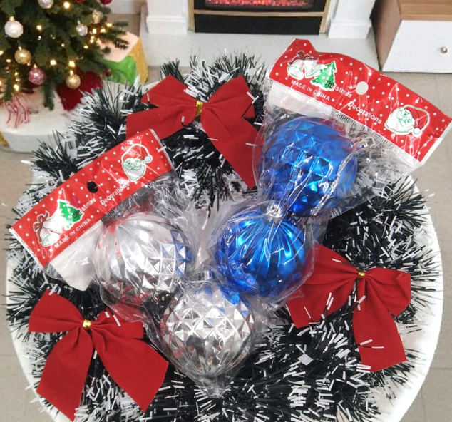 PAQUETE DE 2 UNIDADES BOCHAS FANTASIA METALIZADAS NAVIDEÑAS. COLOR:AZUL-ROJO-DORADO CONSULTE STOCK DISPONIBLE