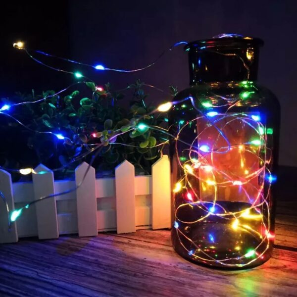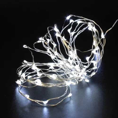 luz guirnalda de almambre, cuenta con 30 unid. led, largo: 3 metros. funciona a 2 unid. pila AA (no incluye) clores: calida-fria