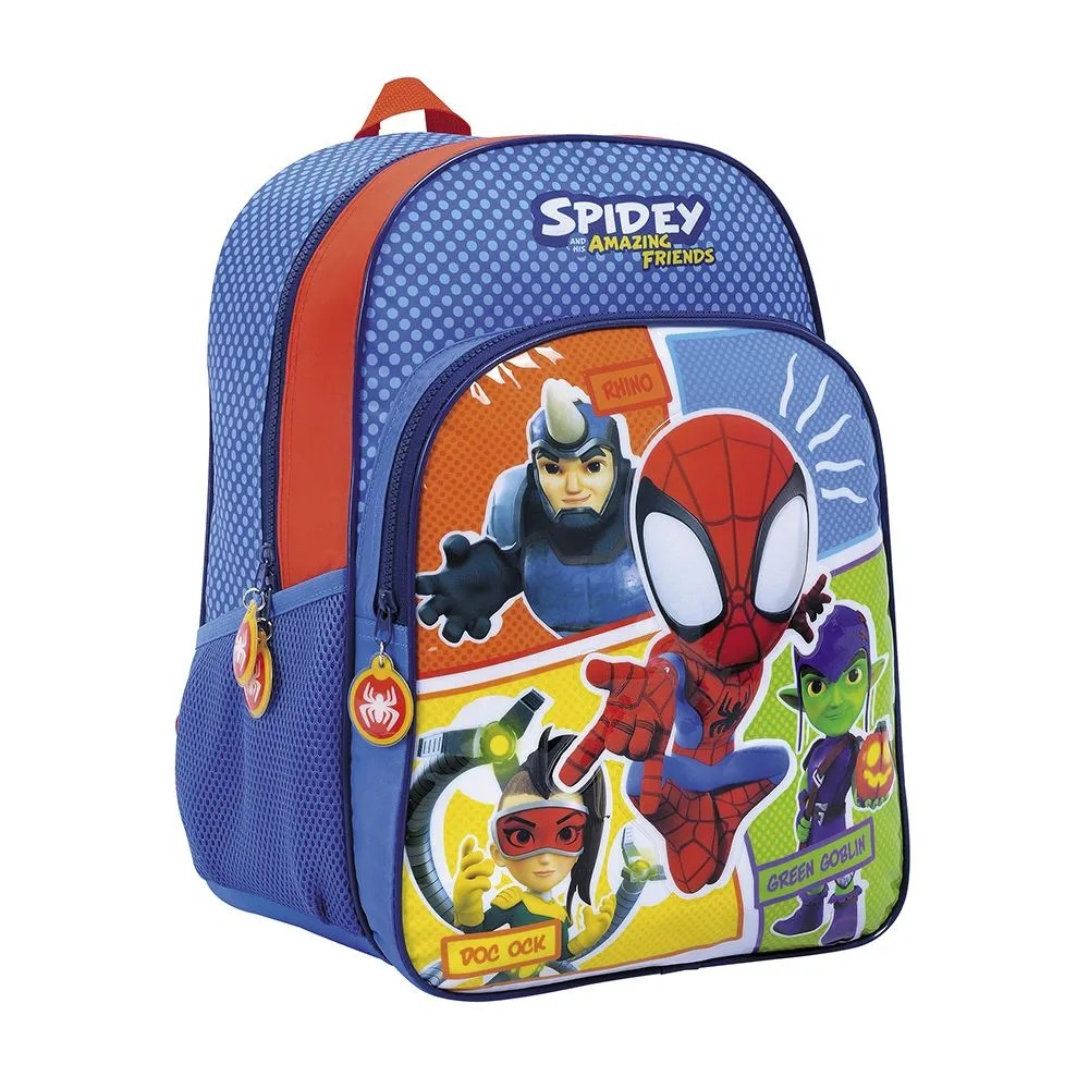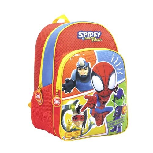 Mochila spidey, su diseño cuenta con dos bolsillos, incluyendo uno para botellas, lo que la hace práctica y funcional. Con un cierre de cremallera, garantiza que los objetos se mantengan seguros. Fabricada en resistente poliéster, esta mochila es ideal para el uso diario.