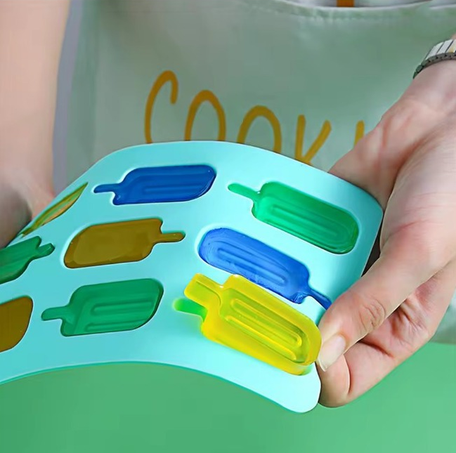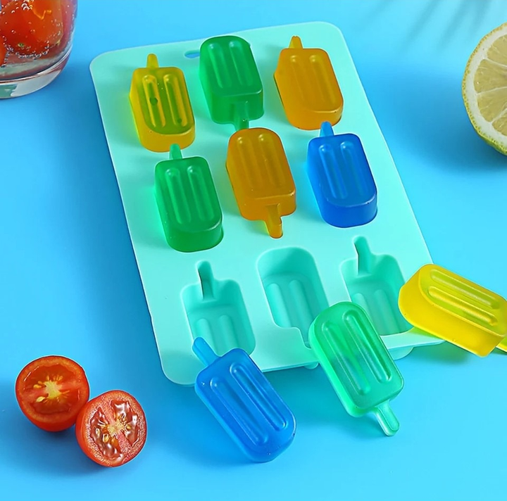 Cubetera silicona en forma de helados, molde de 9 heladitos. Vienen en color fucsia, rojo y violeta. Consultar colores disponibles.