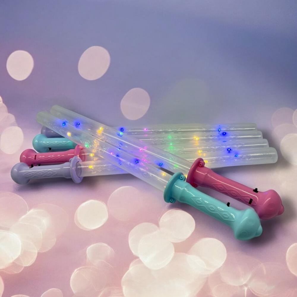 Varita luminoso led con mango de colores, vienen en rosa, verde, celeste y lila.