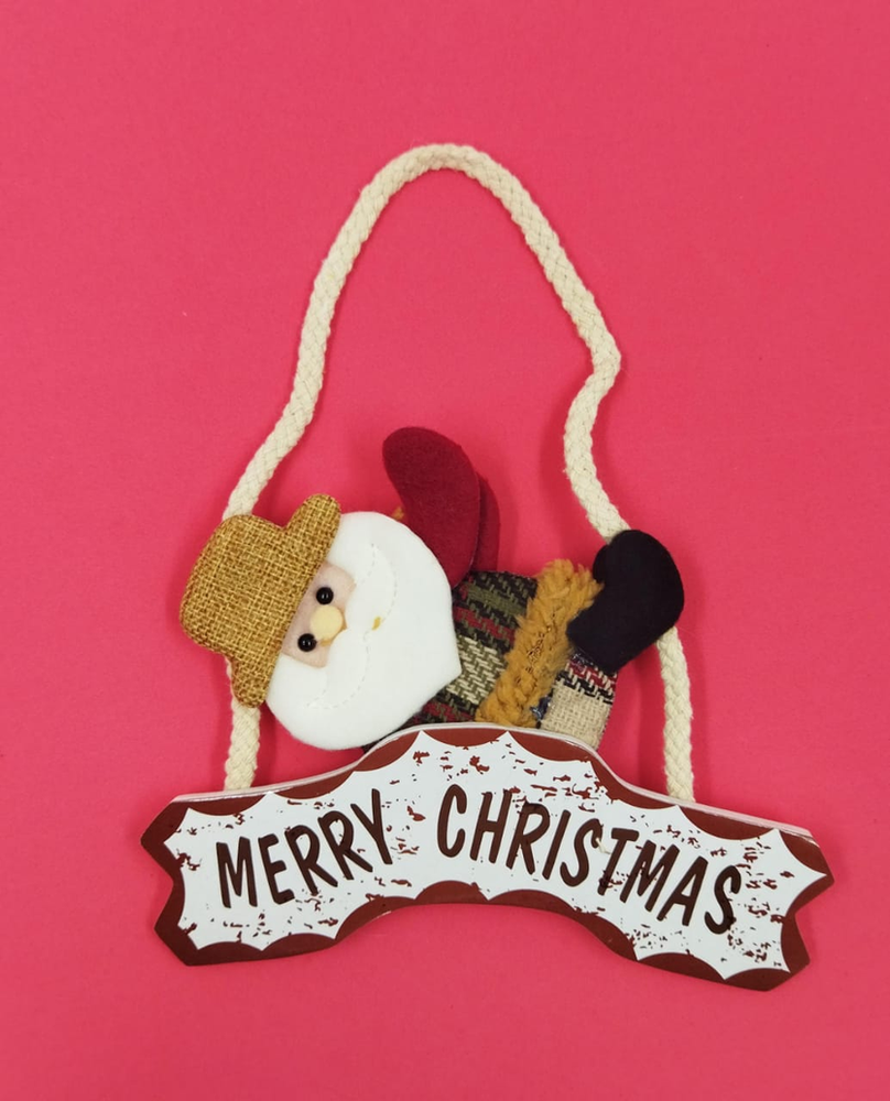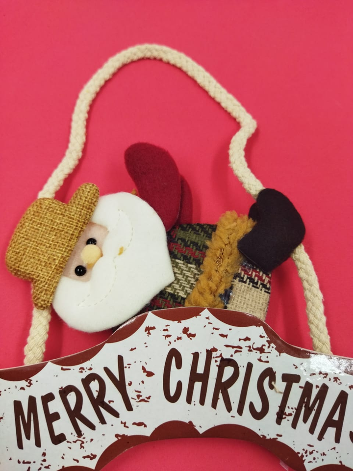 Adorno navideño, muñeco papa noel con cartel "Merry Christmas". Con soga para colgar y adornar cualquier sector navideño.