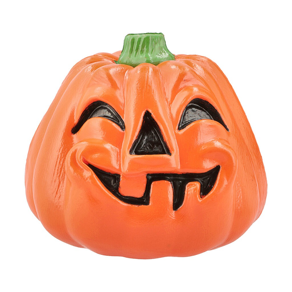 Decora tus fiestas temáticas y eventos de Halloween con este adorno de cabeza de calabaza, diseñado con un estilo clásico y divertido . Este accesorio cuenta con una expresión tallada que incluye ojos triangulares, nariz triangular y una boca con colmillos, todo en un vibrante color naranja con un detalle de tallo verde en la parte superior. Es una calabaza que mide aproximadamente 16 cm de diámetro.