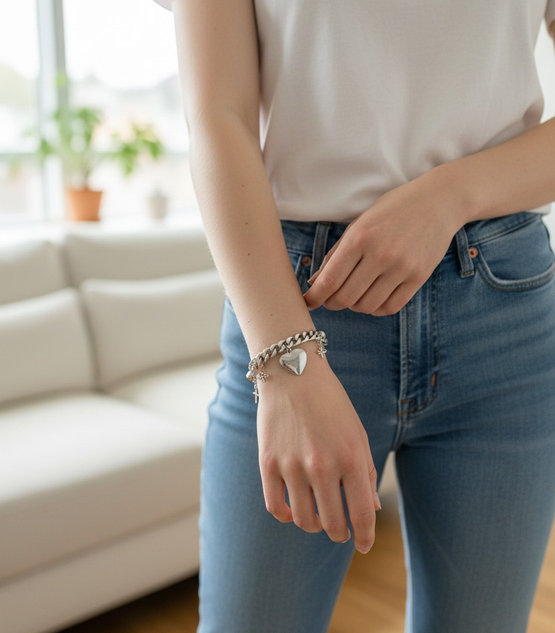 pulsera de acero quirurgico, con diges colgantes.