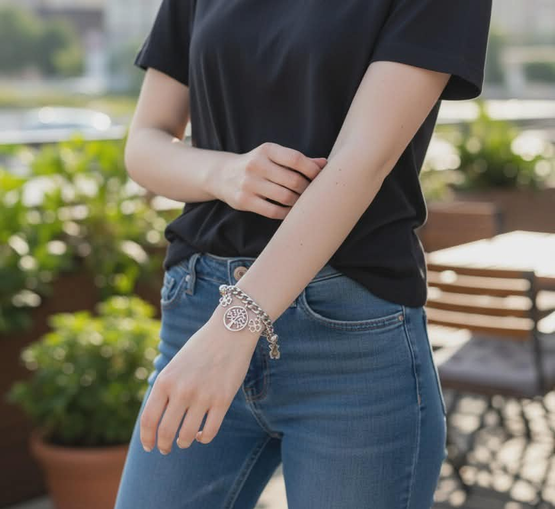 pulsera de acero quirurgico, con diges colgantes.