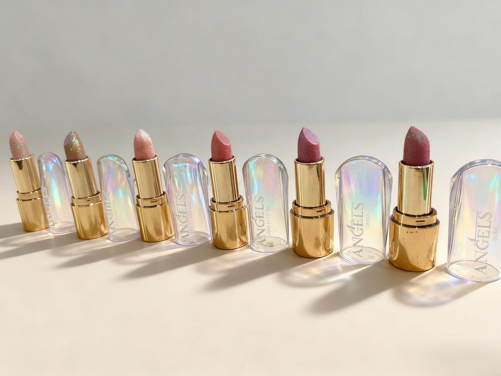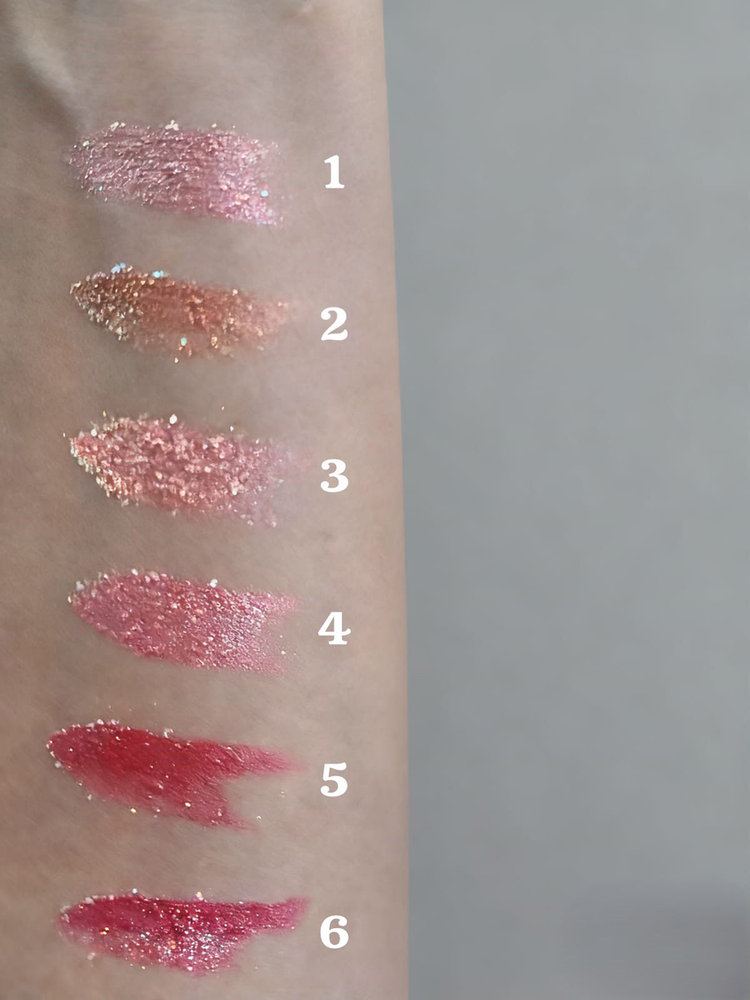 Labial retractil con glitter, 6 colores surtidos.