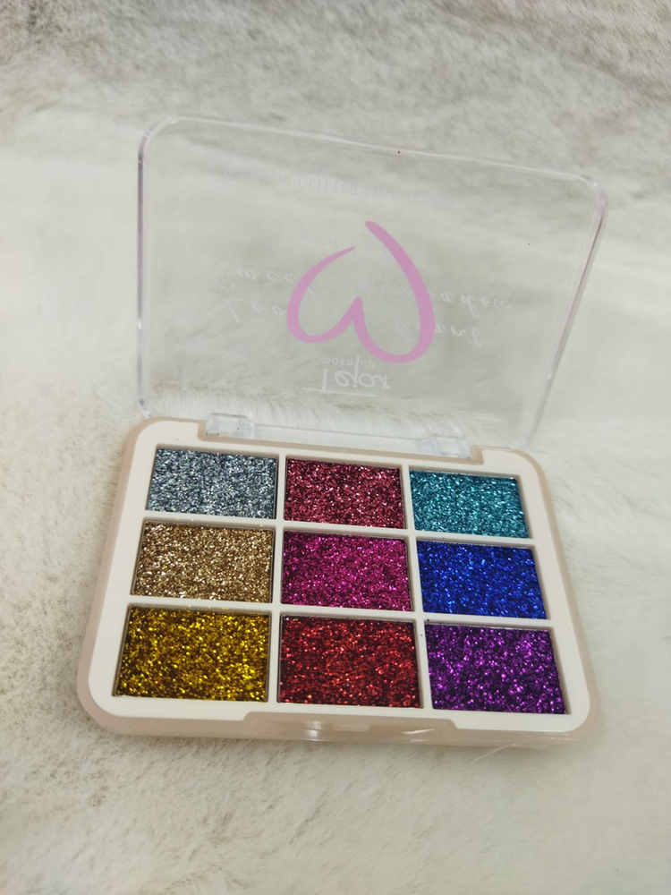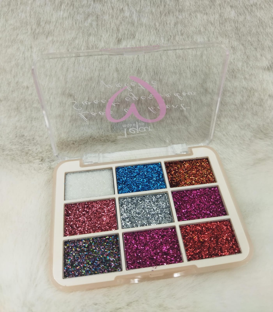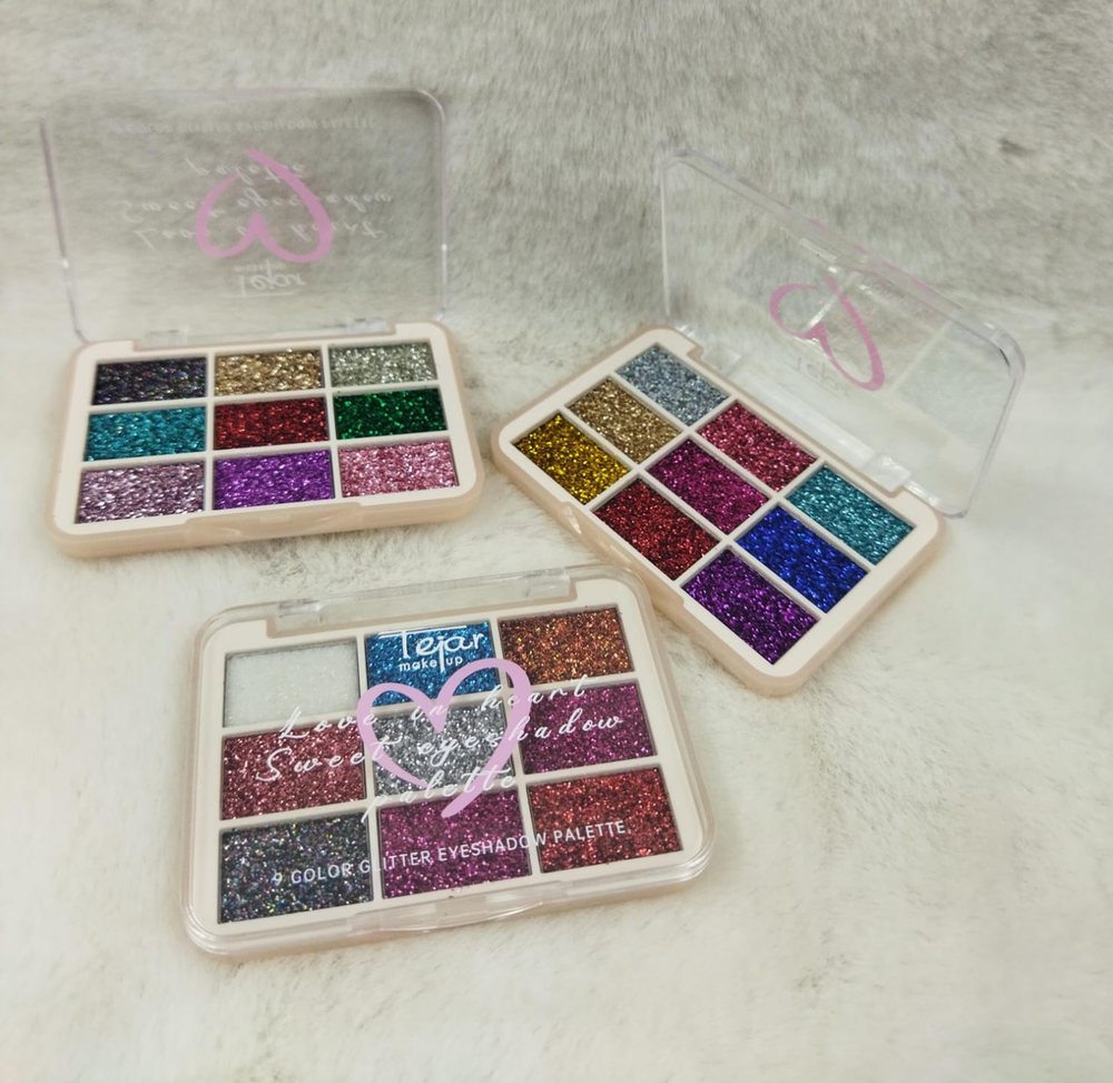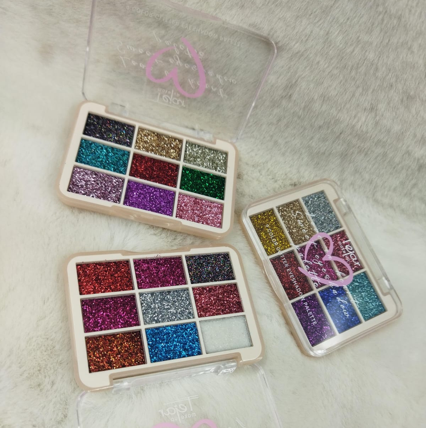 Sombra para ojo glitter, vienen 3 modelos de 9 colores surtidos.