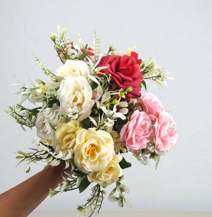 Ramo de flor artificial con 3 rosa y 4 girasoles.