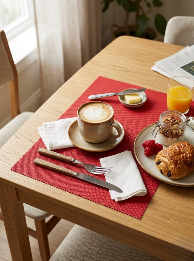 Individiul de mesa tejido en pvc para agregar un toque estetico en cada comida, facil de limpiar, consultar colores disponibles rojo-beige-gris-negro