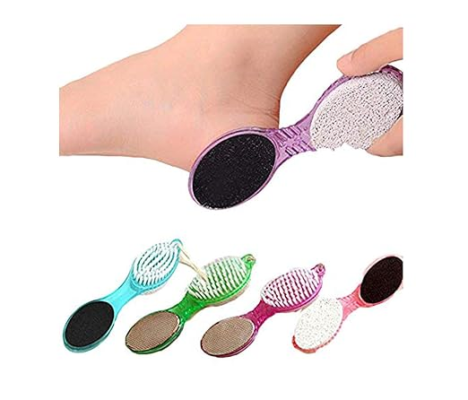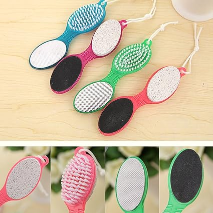 Cepillo de uñas para limpiar pies y uñas Diseño 4 en 1 que se usa mas conveniente y facilmente. Piedra pómez para suavizar talones y dedos de los pies Pulidor de lima suave y lima de metal para alisar superficies rugosas y callos Longitud: 17 4,53cm Color: Celeste, Rosa, Violeta,Verde.