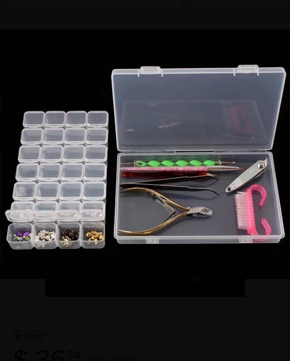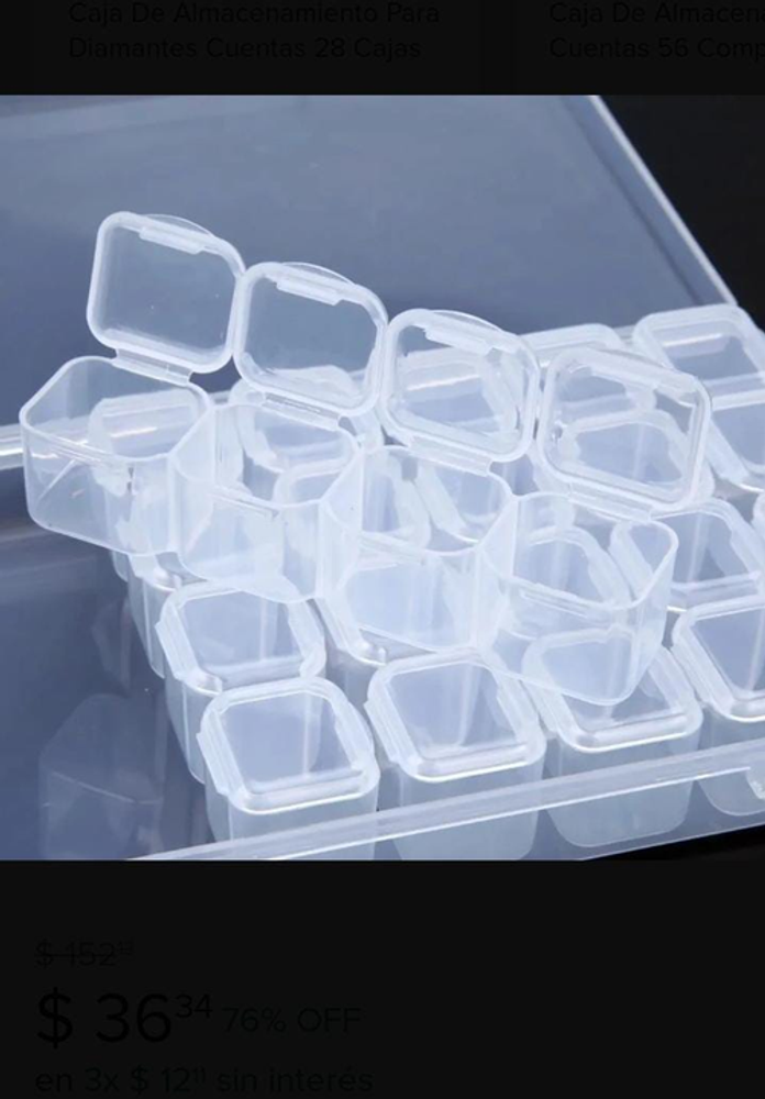 Caja de almacenamiento de 28 divisiones ( 7 cajita con 4 divisiones cada uno) Especificaciones: Diseñado con 28 divisiones, cada rejilla pequeña también tiene tapa para evitar que se mezclen. Aplicable para almacenar aretes, collares, perlas, anillos de dedo u otras joyas pequeñas, arte de uñas, maquillaje, productos de píldoras, etc. Ligero y compacto, cómodo y fácil de llevar. Diseño transparente simple pero elegante, fácil de encontrar lo que quieras.