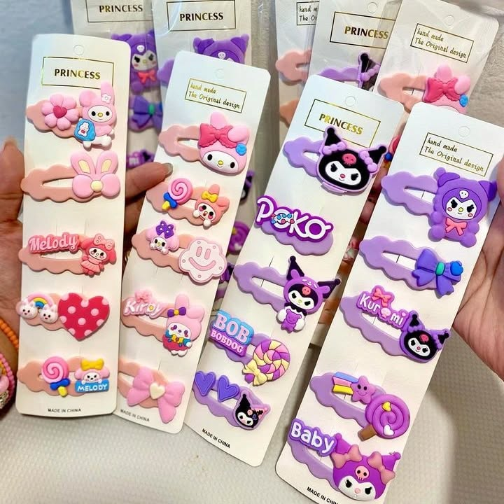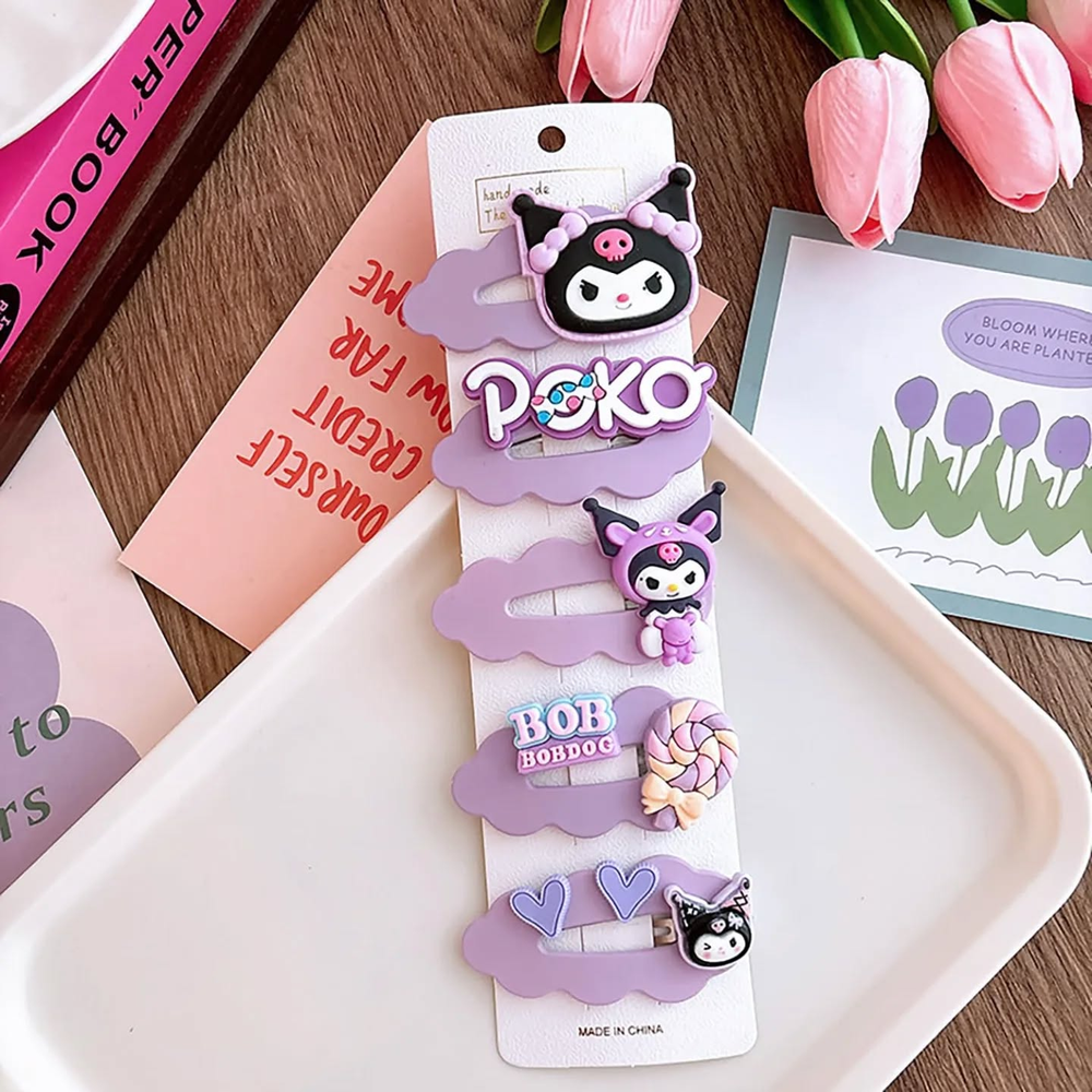 Cada blister cuenta con 5 hebillas con temática de "Kuromi". Vienen 2 modelos diferentes. Ideal para realizar peinados y destacar tu cabello
