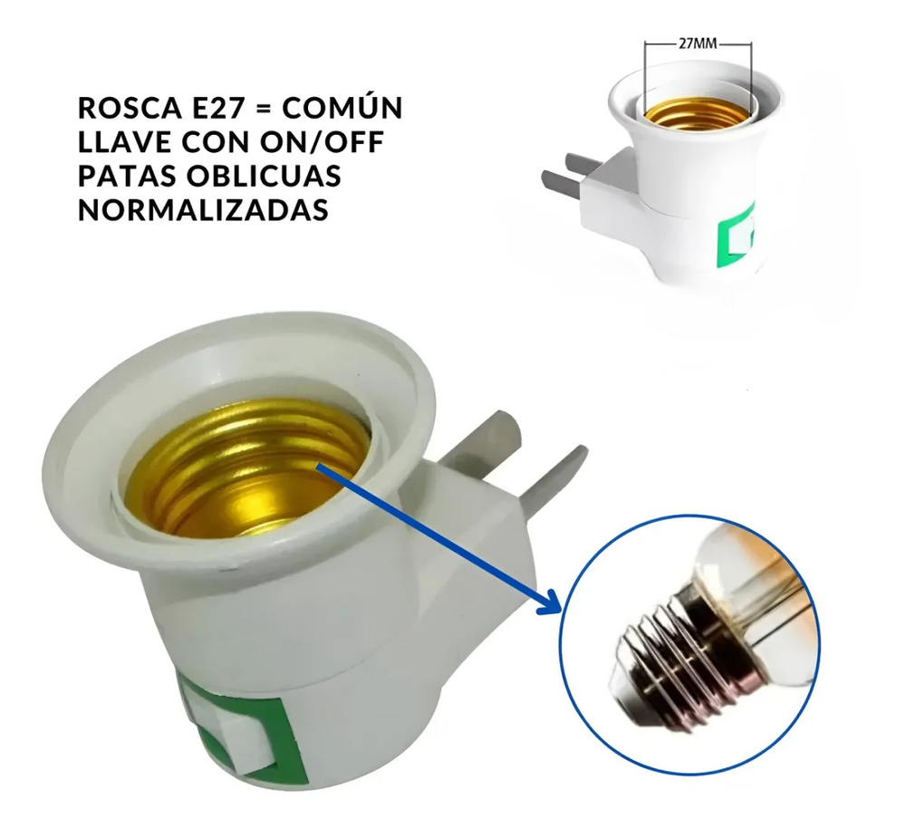 Portalampara Adaptador E27 Tecla y Enchufe vas a poder llevar luz a todos tus ambientes. Incluye tecla de encendido y apagado. Es ideal para usarlo como luz de noche.